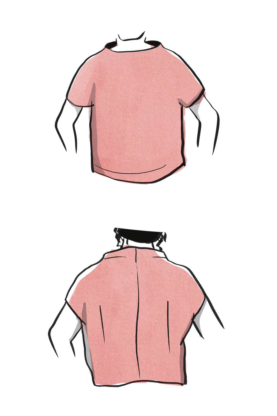 Modelagem mais curta, fica ótima quando vestida sobre uma calça com a cintura mais alta.